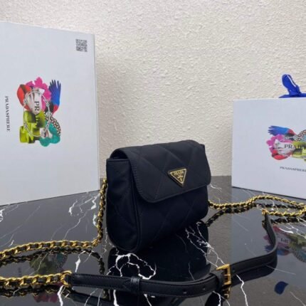 Prada Nylon Vintage Chain rhombus stray Bag 1BD619 Black on sale now. You will get an AAAAA quality knockoff Prada