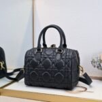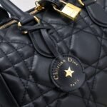 This Dior Groove .25 handbag, part of the winter ready-to-wear collection designed by Maria Grazia Chiuri, is both elegant and stylish. Crafted from blue Oblique-patterned fabric, it features a leather key pouch adorned with the Christian Dior Paris logo and embellished with gold-tone star accents. The key opens the zip-lock closure, and the spacious compartment includes a slip pocket and a zip pocket, perfect for storing daily essentials. It comes with a leather top handle and an adjustable, detachable shoulder strap, allowing you to carry it by hand, over the shoulder, or crossbody, making it ideal for everyday looks. The zip closure is complemented by a lock engraved with the Christian Dior Paris logo. The leather key pouch, featuring the Christian Dior Paris logo and vintage gold-tone metal stars, comes with a key. Large size: 25 cm.