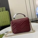 💝Complete with original green box packaging.💝 [New product] Mini handbag from the GG Marmont series. The GG Marmont series interprets a new silhouette with classic color combinations, showing the charm of early autumn. This handbag is made of Gucci Ancora Red (Rosso Ancora) quilted V-shaped leather and comes with a detachable light gold-toned chain shoulder strap with a clasp. The magnetic flap opening and closing is adorned with double Gs, doubling the charm of the entire design. Gucci Ancora Red (Rosso Ancora) quilted V-shaped leather, Gucci Ancora Red (Rosso Ancora) leather trim, light gold-toned accessories.