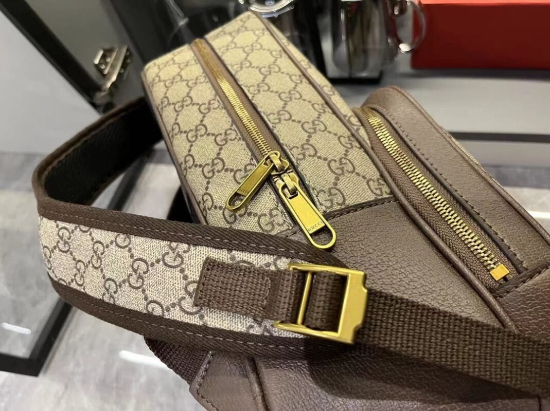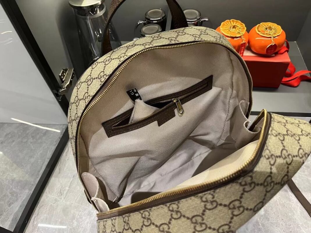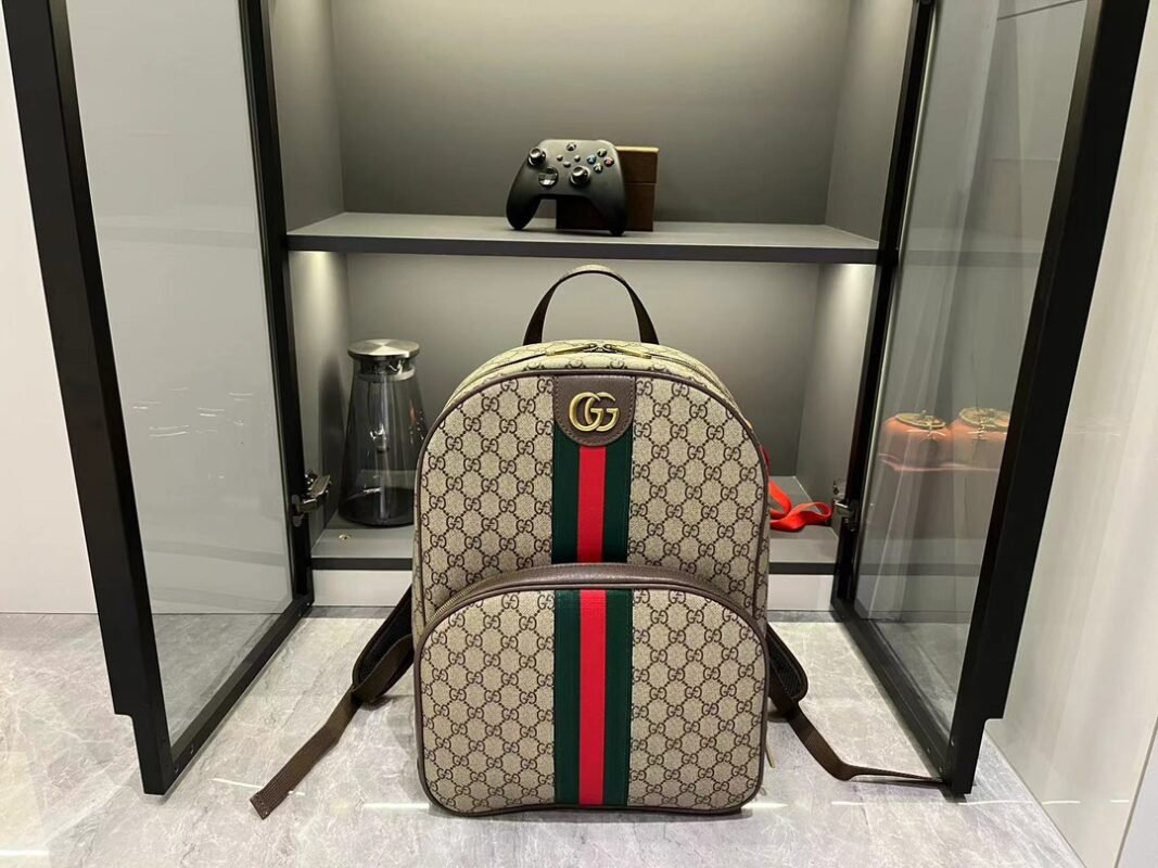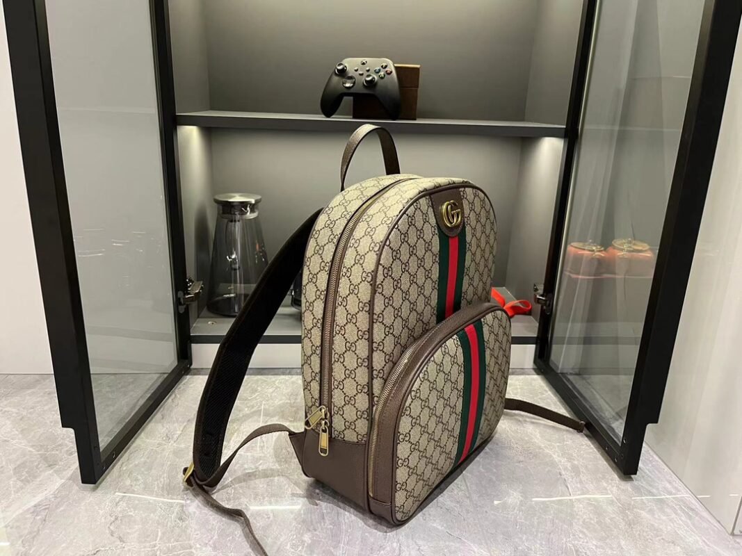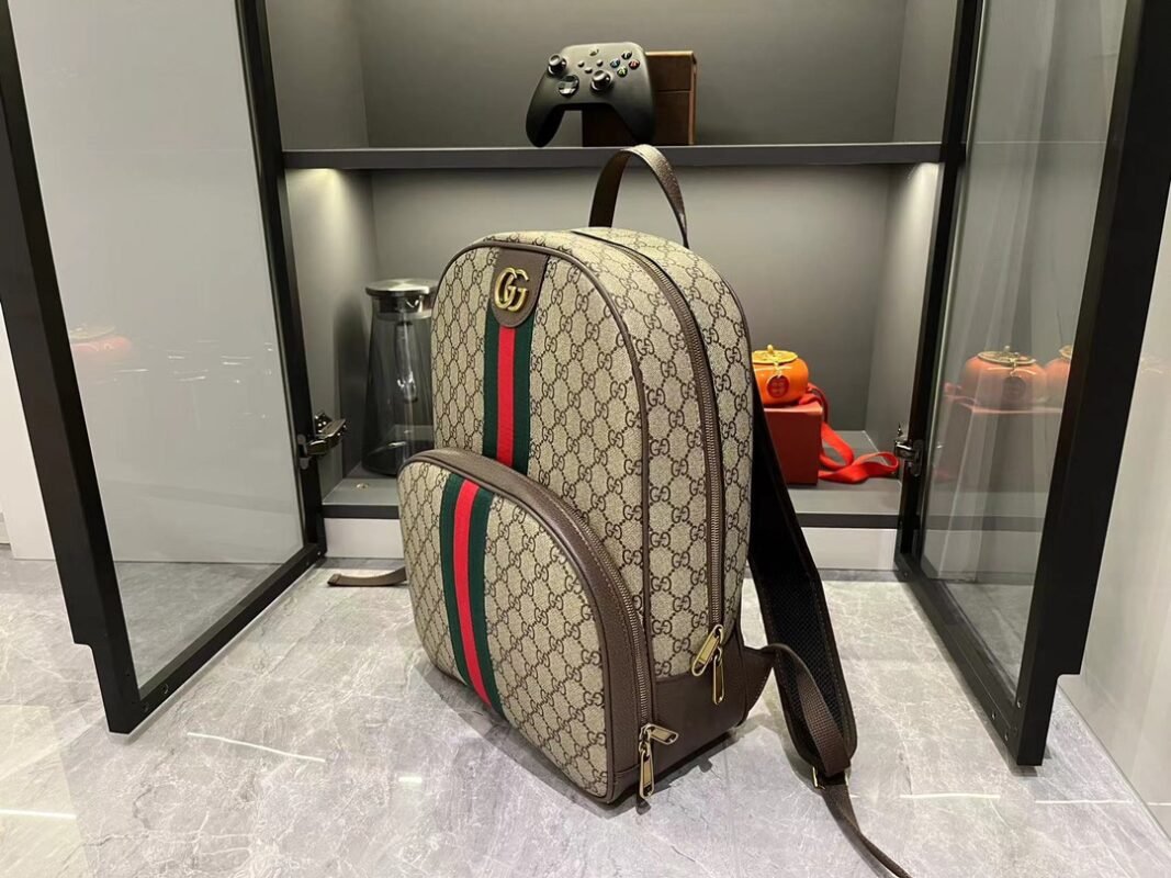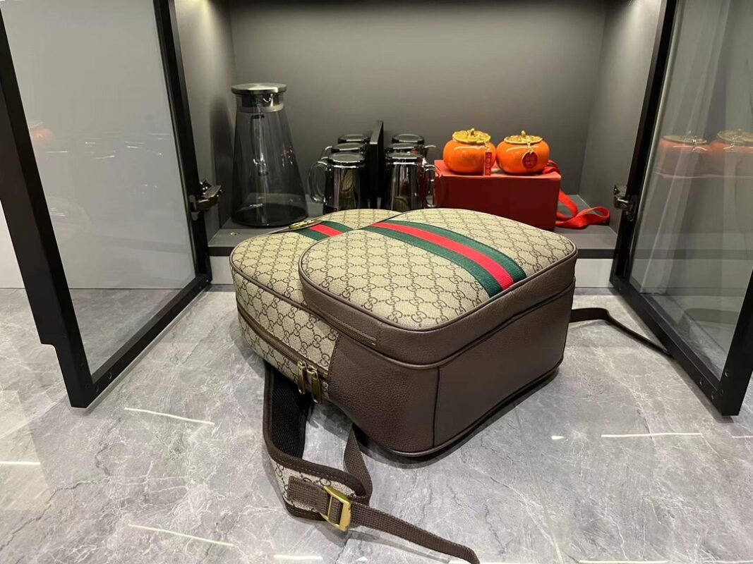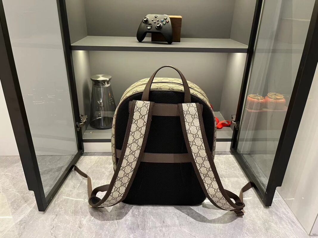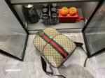 Brief Introduction: Striped webbing and double G accessories are exclusive design elements of the Ophidia collection, injecting new leather accessories year after year. This backpack is exquisite and adds an eye-catching touch to the Spring/Summer 2024 men’s collection. Beige and ebony GG Supreme canvas, brown leather piping, gold-toned accessories, red and green striped webbing double G, adjustable shoulder strap, lined mesh material on the back.