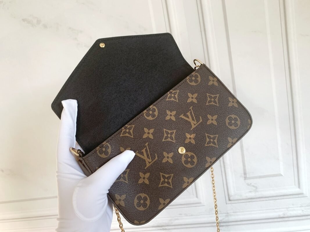 Three-piece set. Model M61276 Felicie handbag is elegant and luxurious. It contains two detachable pockets. It is a fashionable choice for carrying and organizing your everyday items. It is more than just a wallet. After removing the gold chain, it can also be used as a charming handbag or a small handbag. Size 21 * 11 * 2cm