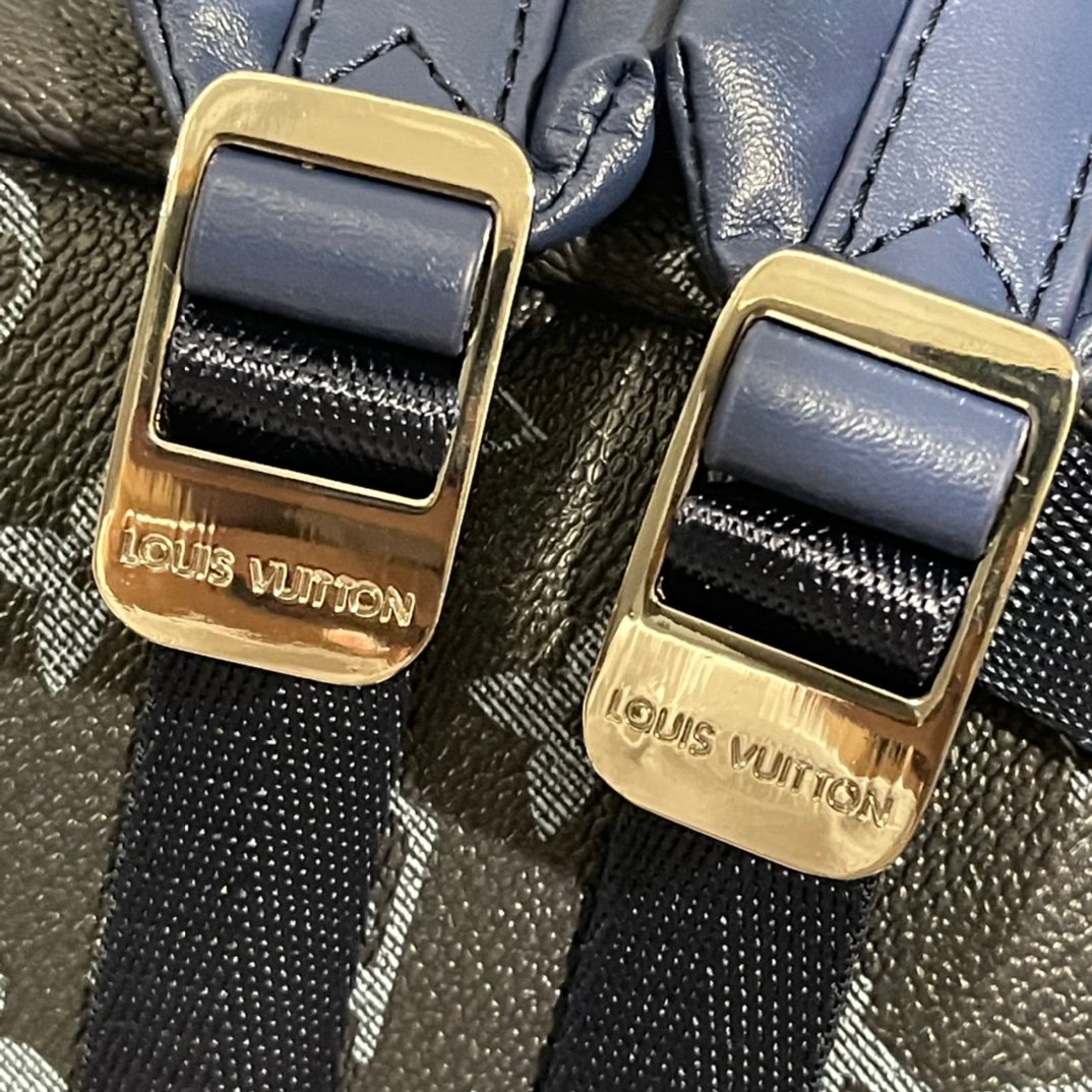 Gradual change blue, the latest Discovery small backpack features deep Monogram Eclipse Reverse coated canvas to create a chic look with the gradual disappearance of Quanfu Monogram patterns, and then imbue the leather label, zipper edge and top handle with bright tones. Zippered front pockets and open side pockets perfect the details for daily carry.