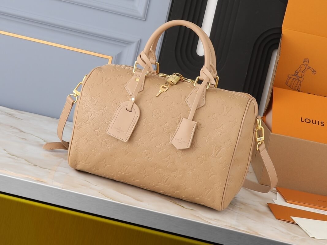 Upgrade the original M47186 M11323 M40391. This Speedy Soft 30 handbag renews the classic design of the Speedy handbag. It creates a lightweight and soft structure with Monogram Empreinte leather and suede leather lining. Whether carried by hand, slung diagonally or carried on the shoulder, it can create a trendy look. Size: 30x21x17 cm.