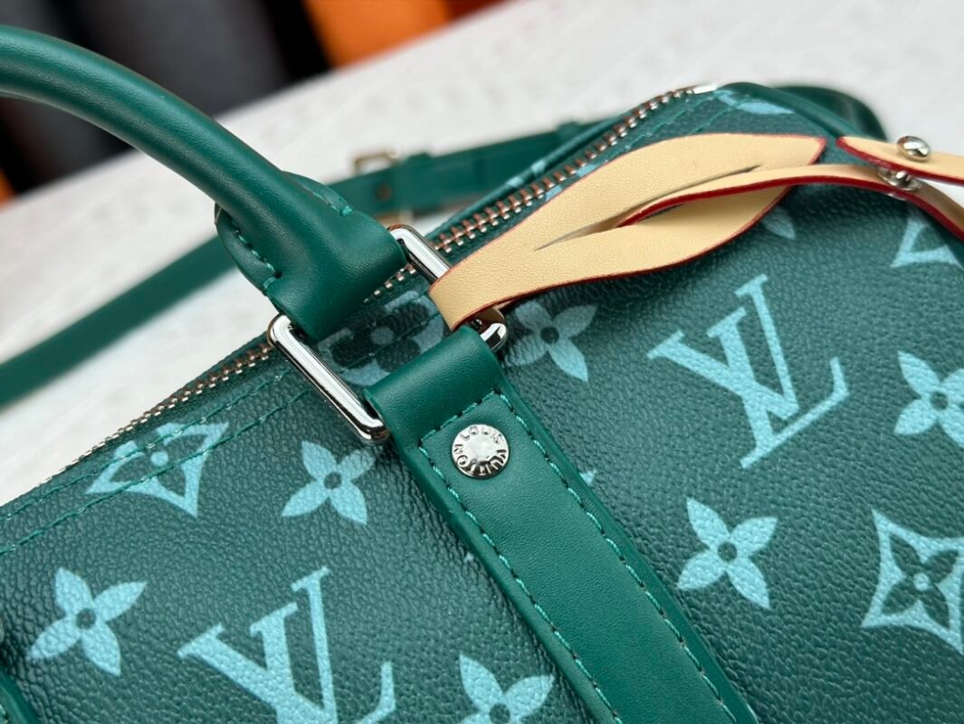 This handbag condenses the classic silhouette of the Keepall travel bag. It is made of Monogram embossed Taurillon leather. The compact configuration is suitable for storing small items such as mobile phones and wallets. Skillfully use the leather handle and detachable shoulder strap to easily follow the trendy style. Detailed characteristics. Size: 25 x 15 x 11 cm.