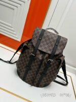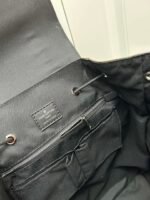 With black leather trim, reinterpret the spirit of the hiking backpack. Gray and black tones are matched with silver snaps and zippers. Equipped with multiple pockets and a leather flap with snaps to ensure the safety of items inside the bag. Detailed features: 41.0 x 48.0 x 13.0 cm.