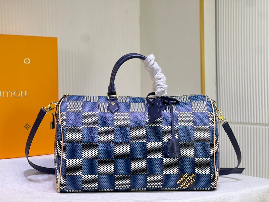 This Speedy P9 Bandoulière 40 Monogram Leather handbag is lined with soft-grained cow leather and sheepskin. It presents the blurry look of canvas printing with a silk screen Monogram pattern, expressing the new season of creative director Pharrell Williams. Size: 40x26x23cm