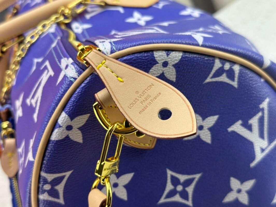 M46964 m24422 m41416 m24420 m11565 Speedy P9 Bandouliére 50 monogram leather handbag is wrapped in soft grained cowhide leather and lined with sheepskin. The silk-screened monogram pattern presents a blurred look of canvas printing, revealing the new season’s ingenuity of creative director Pharrll Williams. Size: 50x29x23cm.