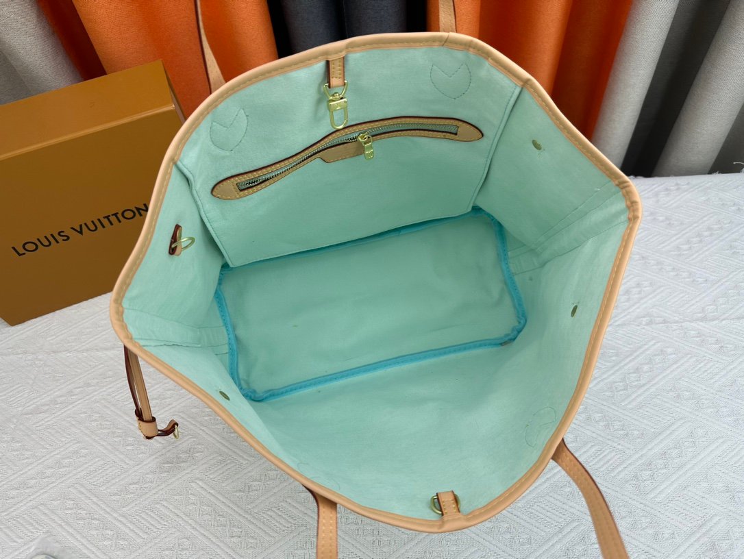 Shopping bags 💋💋 Louis Vuitton Neverfull take on the classic handbag and explore the exquisite details inside the bag. The redesigned inner bag features fresh fabric linings and vintage details inspired by the Louis Vuitton archives, most notably the detachable zip-up handbag, which can be used as a delicate clutch bag alone or as an extra pocket. Bright lining tones add more lively and lively feel to the Monogram classic canvas. Size: 32 * 29 * 17cm