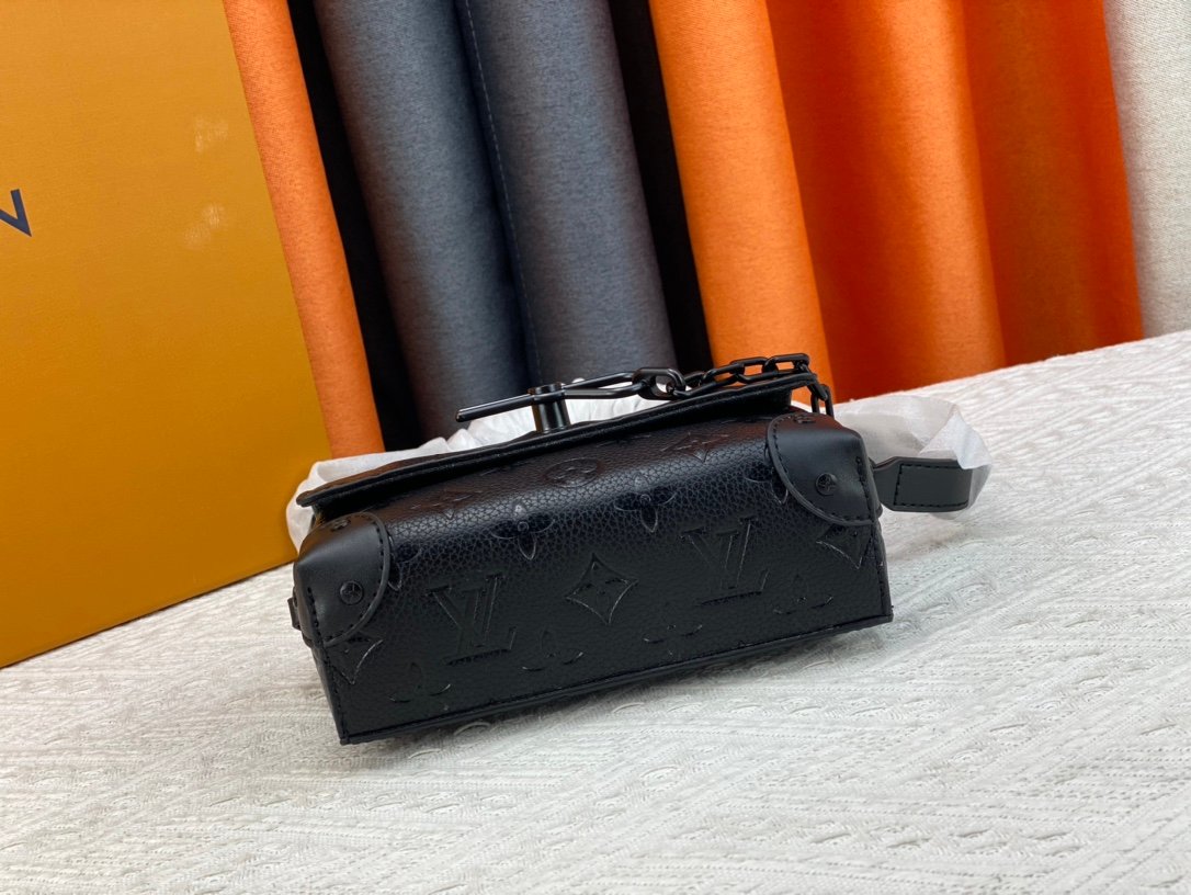 This Steamer Mini handbag is made of Monogram Eclipse canvas and draws chain and pin elements from Louis Vuitton’s Steamer hard case. The appropriate size can accommodate travel needs and is equipped with a zippered inner pocket and an adjustable shoulder strap. 18.0 x 11.0 x 6.5 cm.