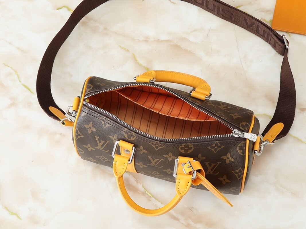 Upgrade the original M12609 old flower yellow, old flower blue, M11595 gradient gray, M46271 black flower. This Keepall 25 handbag is made of Monogram Eclipse Reverse canvas, showing the elegant reinterpretation of Louis Vuitton’s classic pattern. Reinforced straps and leather name tags continue the iconic elements of the Keepall series. The zipper opening and closing keeps personal items safe on the go. Size: 25.0 x 15.0 x 11.0 cm (length x height x width).