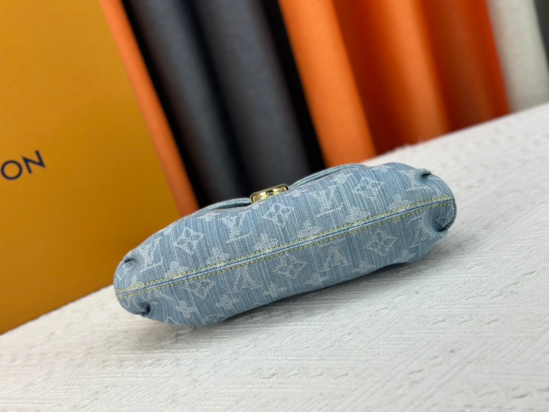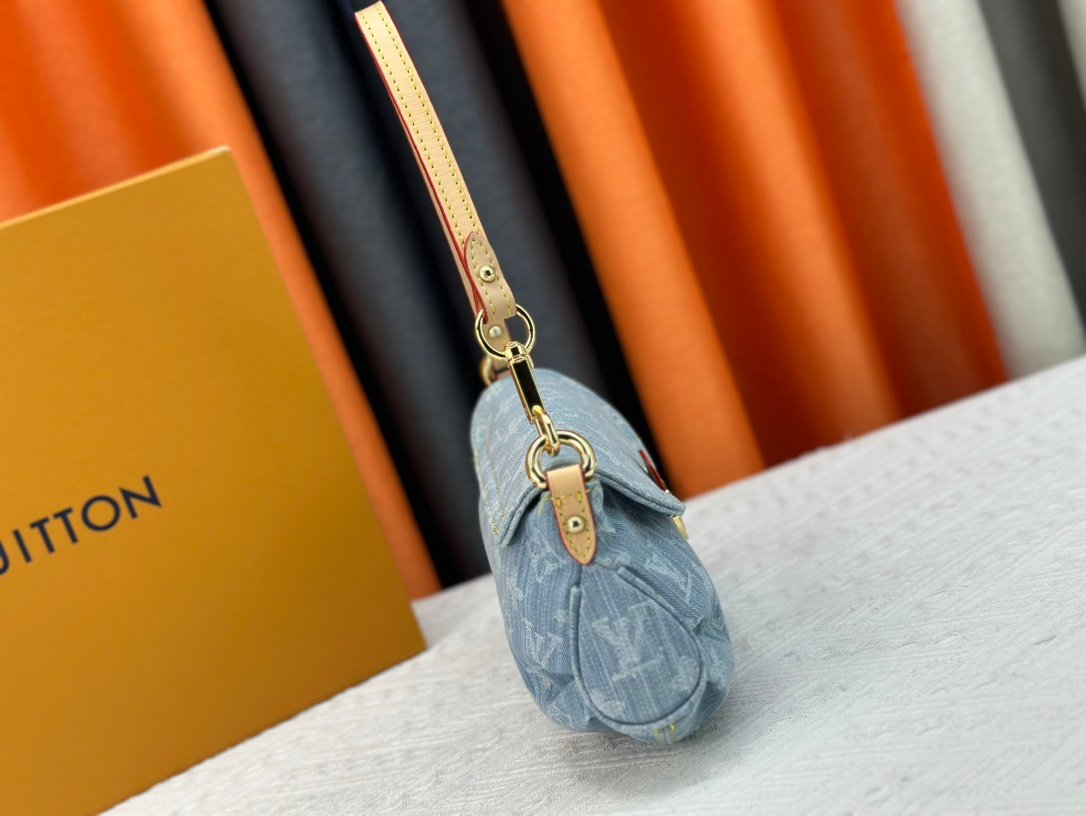 Light denim with discolored yellow leather💥 Vintage denim bag🔥🔥. Original development, original laser hardware👏👏. “Small handbag”. Cool vintage series in stock😆. Vintage out-of-print limited edition. The vintage pattern element is never out of date. Moreover, no matter how it is matched, it is super stylish and extremely洋气! Buy it without hesitation~[Smart]. Original imported vintage fabric – natural yellow leather trim – microfiber lining – inner patch pocket!! Model: M44470; Size: 26x17x7CM.