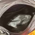• Prada logo nylon lining with two pockets. one with a zipper
