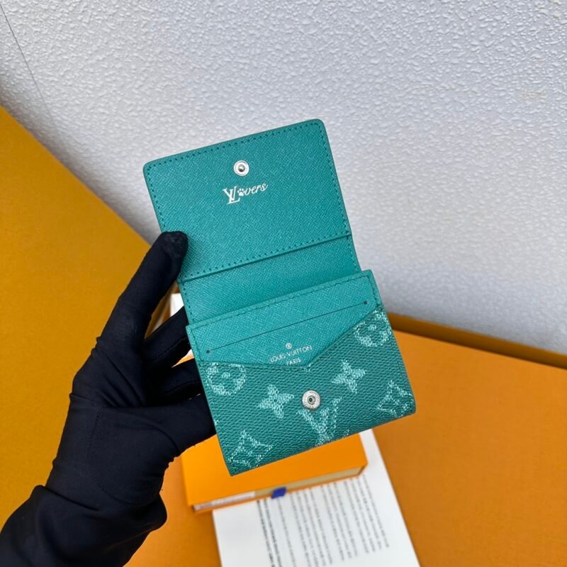 M12664 business card holder🌟This Envelope business card holder is made of Monogram Heritage canvas. The design is slim and can be easily put into a pocket or handbag. The flap is firmly fastened with a hidden snap. When opened, it reveals an accordion compartment and business card slots. The business card holder is lined with cowhide and is adorned with the Marque L.Vuitton Déposée logo from Damier canvas. Size: 10.5 x 8.