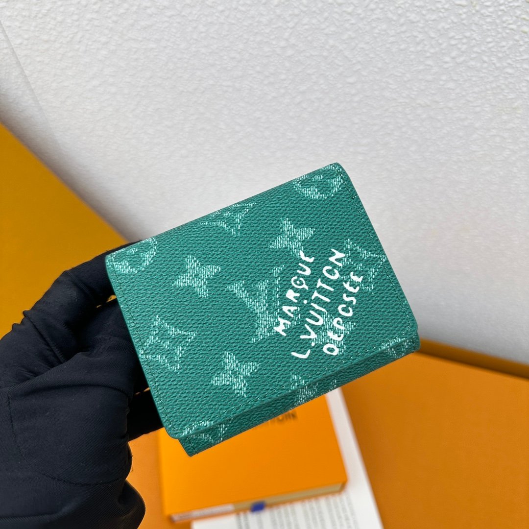 M12664 business card holder🌟This Envelope business card holder is made of Monogram Heritage canvas. The design is slim and can be easily put into a pocket or handbag. The flap is firmly fastened with a hidden snap. When opened, it reveals an accordion compartment and business card slots. The business card holder is lined with cowhide and is adorned with the Marque L.Vuitton Déposée logo from Damier canvas. Size: 10.5 x 8.