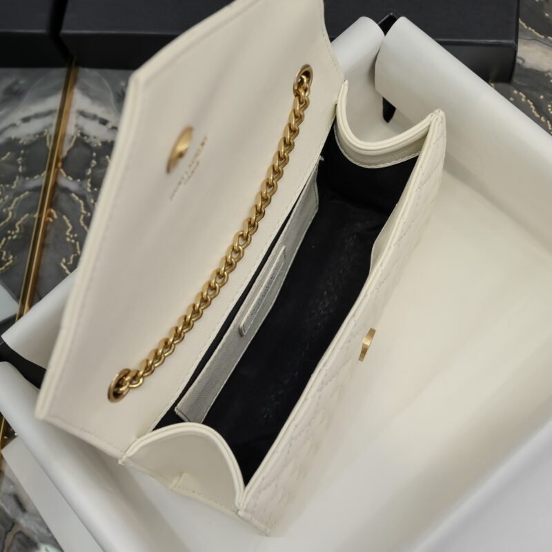 Small size. Envelope# white with gold buckle. Small grained embossed quilted genuine leather envelope bag. Classics are eternal. The V-pattern combined with rhombus pattern of caviar texture is extremely beautiful. It is very wear-resistant. Italian cowhide with a striking Y logo, embodying both elegance and fashion. It is very versatile. The small size has a large capacity. Looking at its side, you can tell it can hold a lot. Model: 52620. Size: 21x13x6cm.