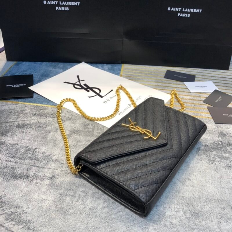Medium, Envelope #Black Black Buckle Medium Grain Embossed Quilted Leather Envelope Bag Classic is eternal, beautiful V pattern and diamond caviar pattern, Italian cowhide with eye-catching Y logo, atmospheric and fashionable all in one! One chain and three backs, single chain crossbody, double chain single back, single chain single back are perfect, little fairies of different heights, there is always a back method that suits you, bad, it is the feeling of heart Model: 48722 Size: 24x17.5x6cm