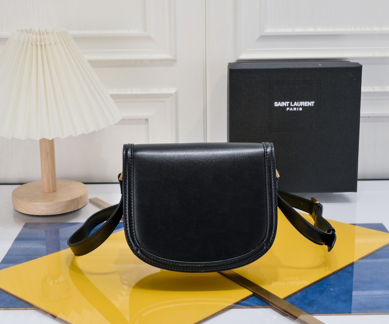 YSL new saddle bag with box. Cowhide leather. Can be slung diagonally or carried on the shoulder. With 3 inner compartments, inner zipper pocket and flat pocket. Original factory leather. Original factory hardware. Shiny retro buckle. Model number: 202326 brown with gold hardware. Size: 19×16×6 cm.