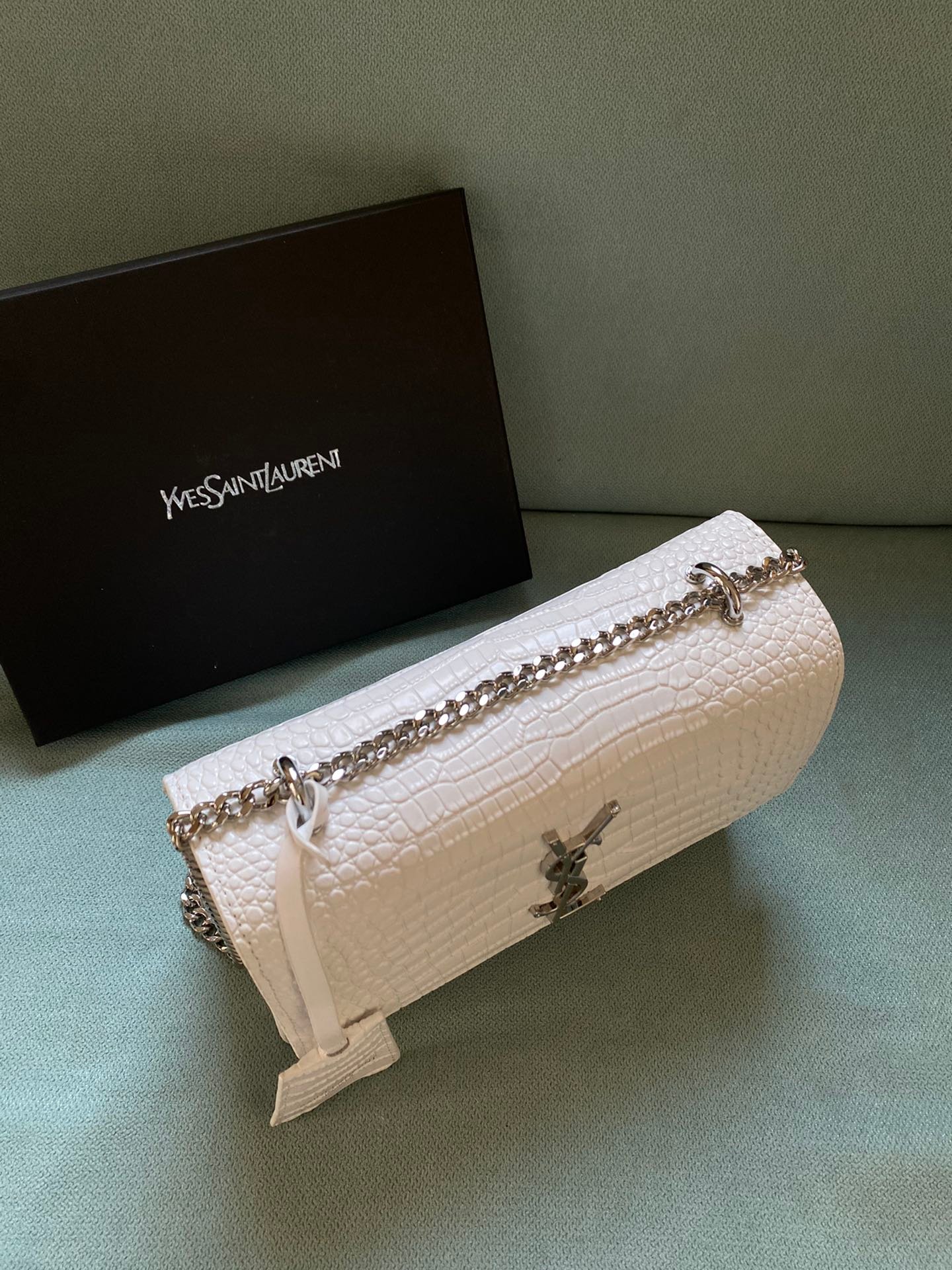 Silver buckle! The latest crocodile pattern in the store counter. The same sunset bag as Wang Ziwen and Zheng Xiuwen. Top imported original single cowhide crocodile pattern. High-end custom. Genuine version. Vacuum-plated antique silver hardware. The workmanship of leather, metal, etc. is simply impeccable! Crocodile pattern. Size: 22*14.