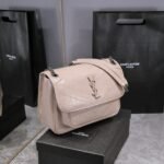 Large Saint Laurent Niki messenger bag – top Italian two-tone baked tar cowhide paired with vintage hardware. The texture and gloss are very unique! The hardware is even more special. The surface of the hardware LOGO is wrapped in cowhide! Two compartments, one zipper pocket, super large capacity! The oiled wax leather of the bag body is extremely soft to the touch and can be bent at will without any problem. Model: 498894. Size: 28x20x8cm.